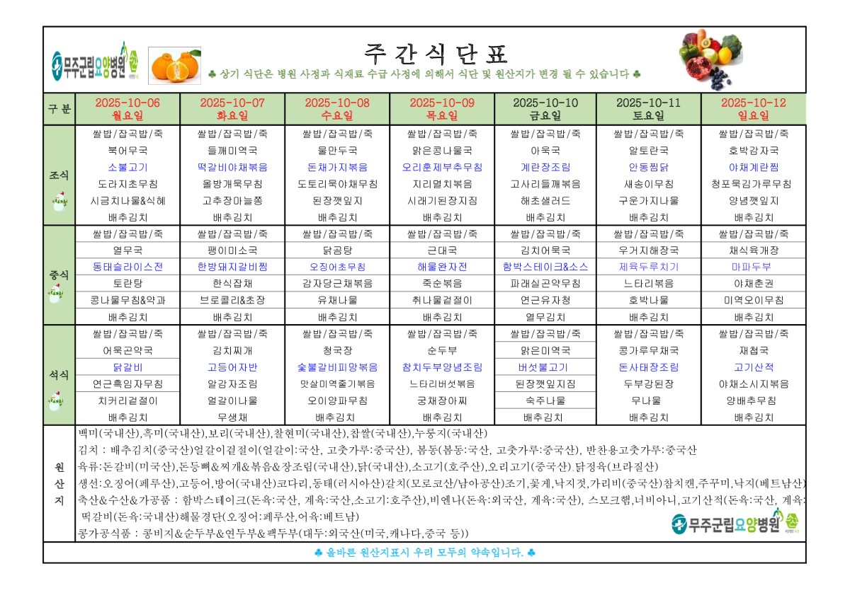 - 이전글2025년 10월 둘째주 주간식단표 25.10.10
