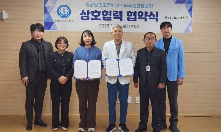 2025년 11월 18일 14시에 원광보건고등학교와 무주군립요양병원의 상호협력 협약식이 진행되었습니다.양 기관의 인력 양성..