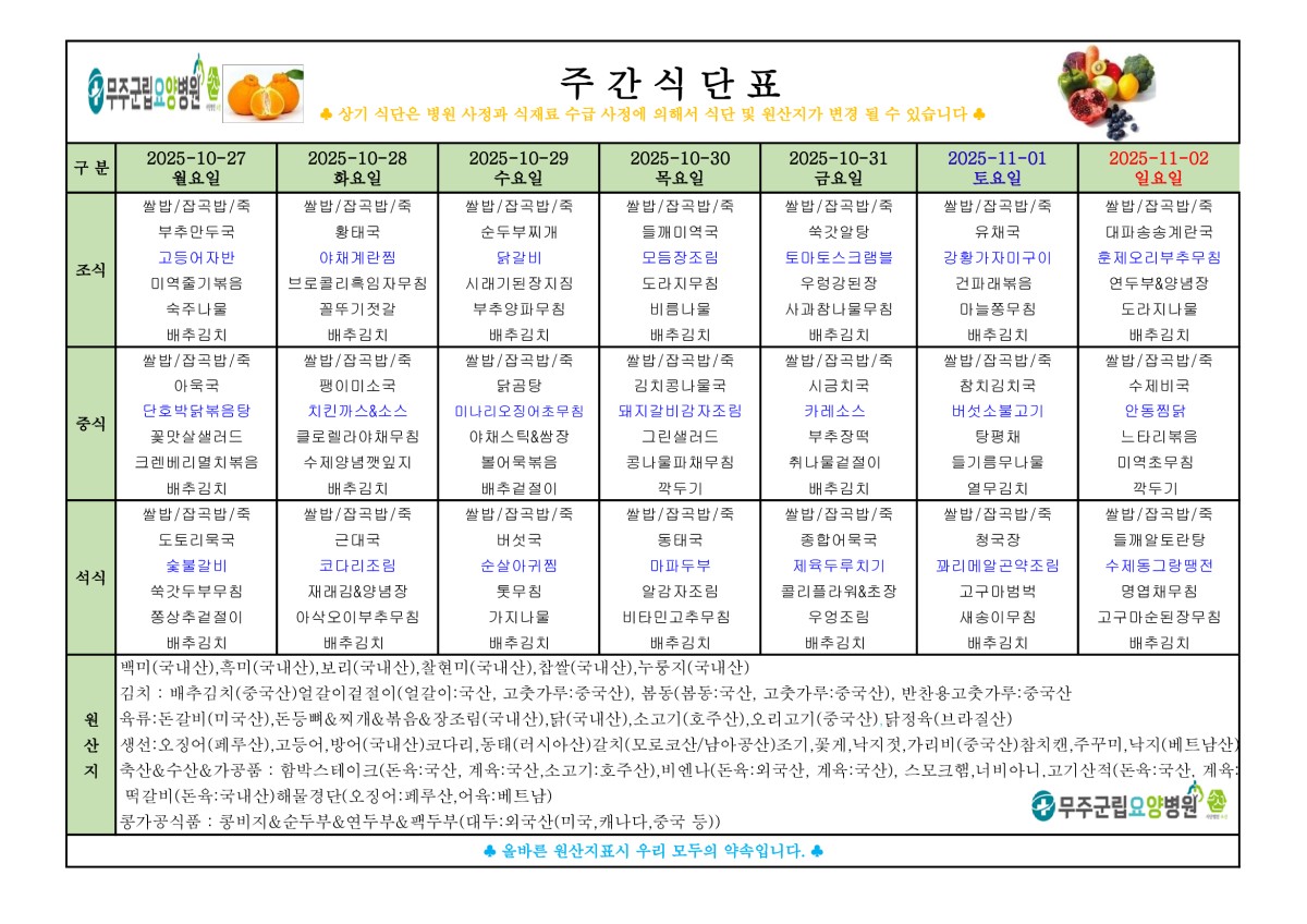 - 이전글2025년 11월 첫째주 주간식단표 25.10.29