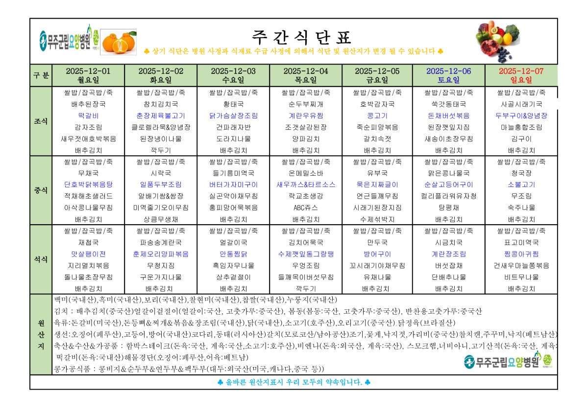 - 이전글2025년 12월 둘째주 주간식단표 25.12.03